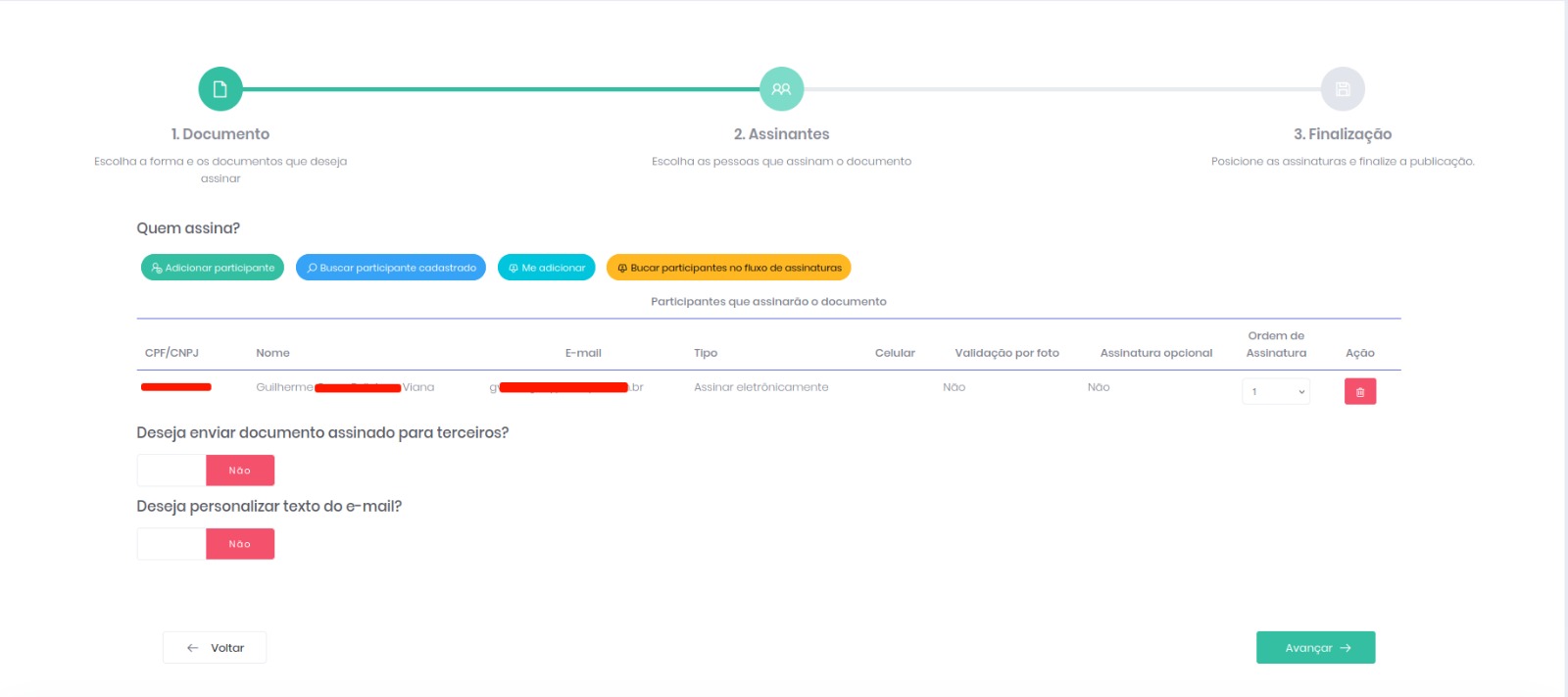 Indicada para documentos que exigem maior formalidade, como contratos jurídicos, procurações e documentos contábeis, ela garante criptografia e rastreabilidade total.
